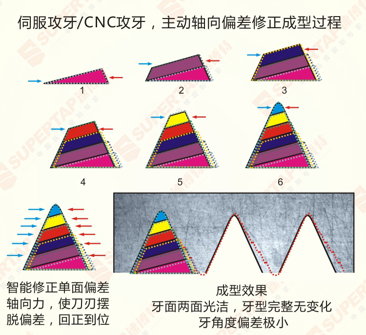 經(jīng)過幾個(gè)月的不斷實(shí)驗(yàn)。我們最終做出了能夠修正軸向力偏差的絲錐攻出完美的牙型。當(dāng)我們把用我們研發(fā)的絲錐攻出來的牙的產(chǎn)品送到廠家的時(shí)候,工程師無法相信那是絲錐攻出來的效果,當(dāng)即上機(jī)試刀,當(dāng)看到效果一樣時(shí),工程師對(duì)我們的工匠精神以及堅(jiān)韌意志表示徹底的折服。